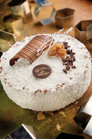 Montate l’albume inserendo 1000 g di zucchero in tre volte. Una volta raggiunta una struttura stabile, inserite i 400 g di zucchero e smettete di mescolare. Formate alcuni dischi di meringa della misura desiderata in appositi anelli e fateli asciugare in forno per 80 minuti a 120°C valvola aperta.