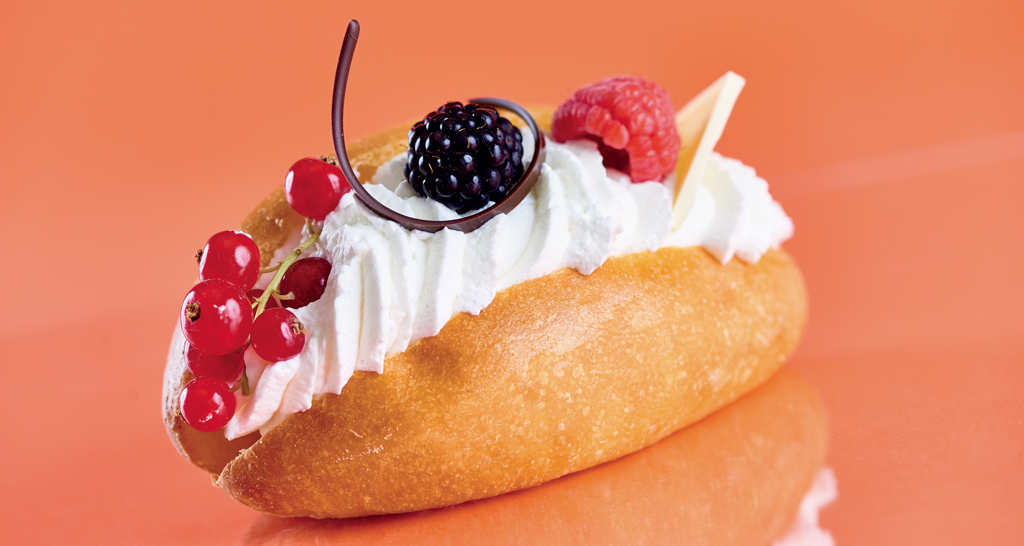 Incidete il maritozzo e decoratelo con Panna 35% White Debic montata e frutta fresca.