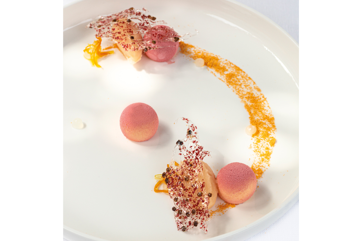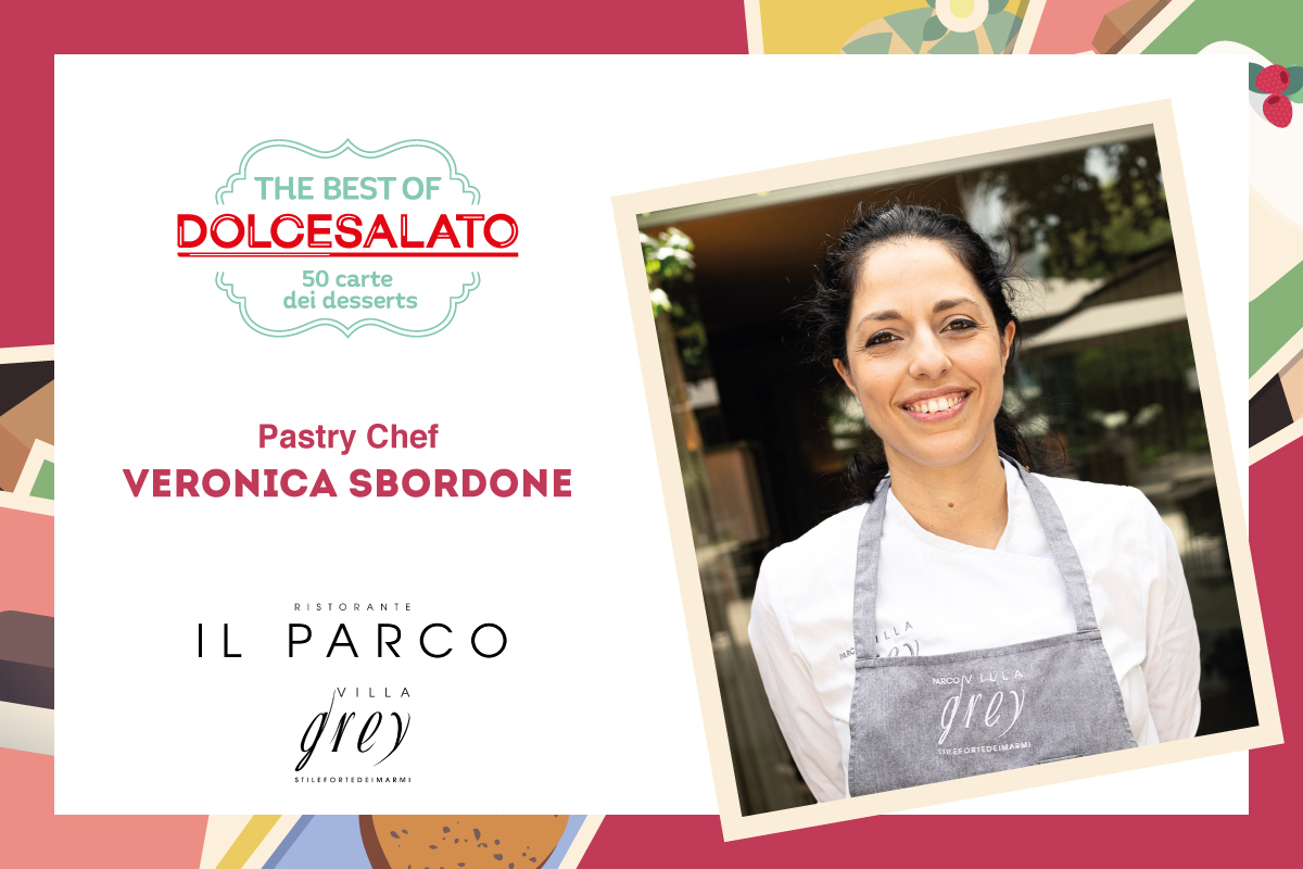Classe 1985, Veronica Sbordone muove i primi passi in pasticceria tra le aule di ALMA, per poi volare prima a Parigi nei ranghi dell’Armani Caffè, quindi Londra e in Italia per afFInare la sua professionalità nei più rinomati ristoranti stellati dal Winter Garden by Caino St. Regis a Firenze, al Bistrot e al Lux Lucis di Forte dei Marmi per approdare al Villa Grey, dove ricopre il ruolo di pastry chef da tre anni. Una cucina sospesa tra spinte innovative e forti legami con la tradizione, fondando la sua base sulla qualità della materia prima e sulle lavorazioni rispettose e che prelude a una dolce conclusione – il dessert – studiata nei minimi dettagli. Da sempre Veronica predilige i “dolci intelligibili” che stupiscano il cliente senza confonderne il palato. La carta dei dolci del Parco di Villa Grey è frutto di una stretta collaborazione tra Veronica e l’attuale chef Roberto Monopoli: una proposta di cinque dessert con un pre-dessert e una piccola pasticceria che varia periodicamente in base alle stagioni ed è strutturata per accontentare sia i palati più golosi – con soluzioni cremose e avvolgenti – sia quelli che prediligono gusti freschi e limpidi. Un classico che non manca mai è Cioccolato, whisky e tabacco, dessert a cui Veronica è molto affezionata, nonostante la sua predilezione per dolci semplici, agrumati, non spiccatamente dolci, come la proposta con verbena, cetriolo marinato allo yuzu, menta, oppure il dessert all’anguria marinata al lime e succo di anguria in osmosi, gelato al latte di capra, chantilly montata al pistacchio con pistacchi sabbiati e granita di anguria.