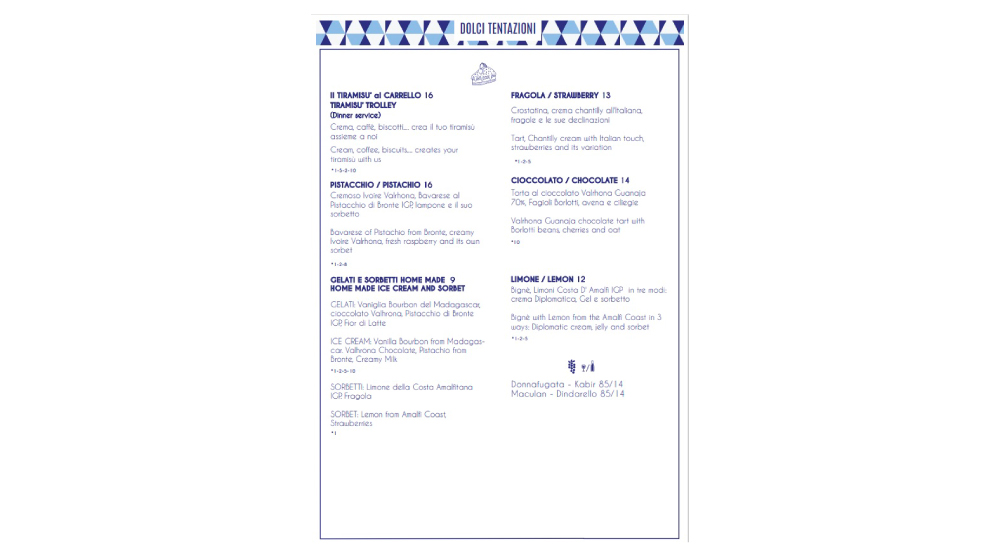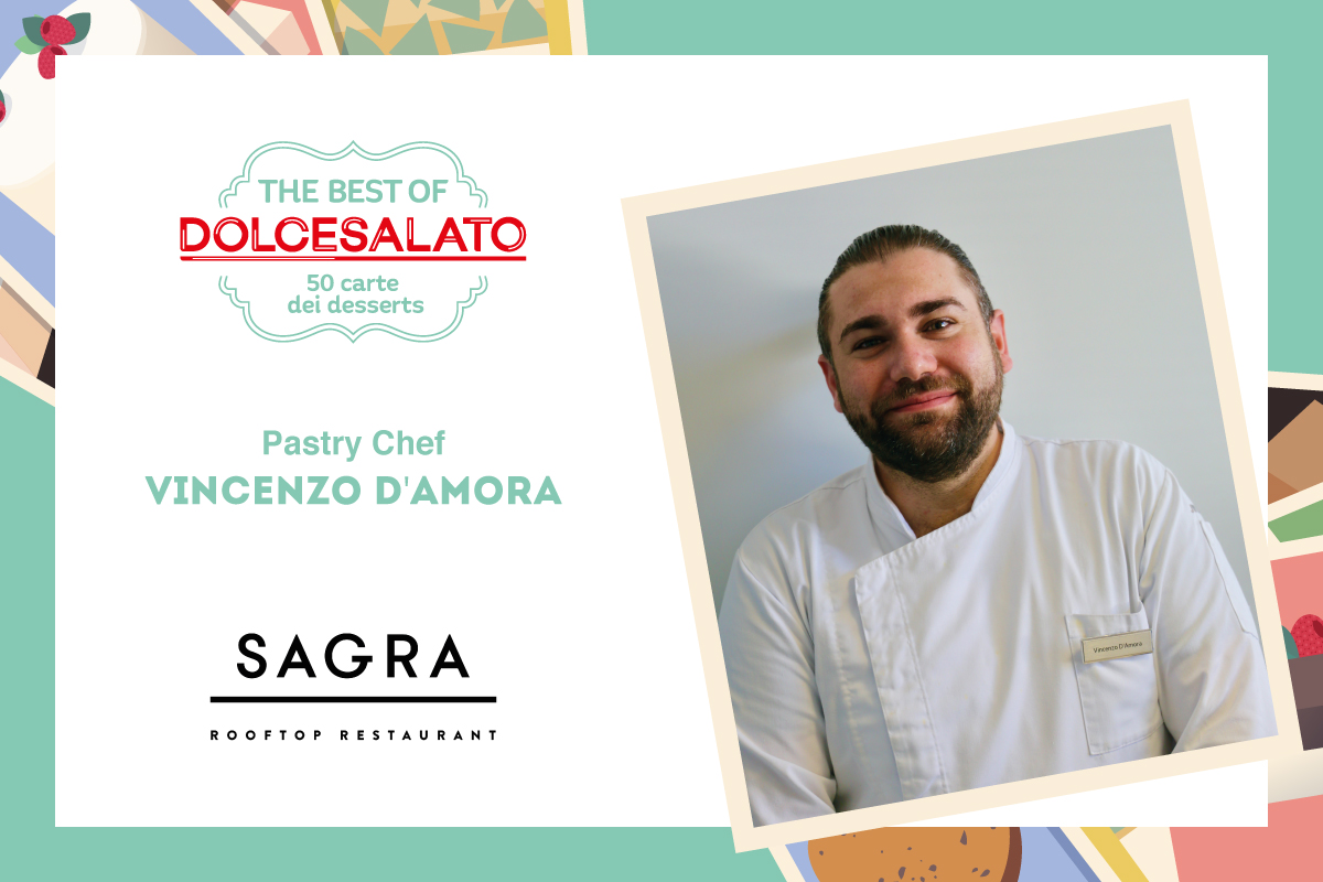 Vincenzo D’Amora è da un anno il responsabile di pasticceria del Sagra Rooftop Restaurant e dell’hotel che lo accoglie, il JW Marriott di Venezia. Classe 1988, è originario di Pompei, ma la strada della pasticceria l’ha portato prima a Roma e poi a Venezia nel 2019, sempre in una delle insegne del gruppo Marriott, il St. Regis. Quando Giorgio Schifferegger ha preso in mano la cucina del JW, Vincenzo ha però deciso di condividere questa esperienza: «Avevo già lavorato con Giorgio a Venezia e ci siamo sempre trovati bene, è uno chef che ha un grandissimo rispetto per la pasticceria». Tanto che la proposta di Vincenzo di realizzare a mano e “fatti in casa” tutti i dolci serviti all’hotel e al ristorante è stata appoggiata fin da subito: «Prepariamo circa 15 prodotti da forno diversi solo per la colazione, tutti fatti a mano. In brigata siamo in quattro e di lavoro da fare ce n’è tanto, considerando una media di circa 190 persone ospiti dell’albergo, 50/60 coperti a pranzo e 100/120 coperti a cena, ma si è creato un ambiente talmente affiatato che è un piacere stimolarsi a vicenda in cucina». E la filosofia che anima il ristorante è una continua ricerca armonica tra cucina e pasticceria: un omaggio alla tradizione italiana, con piatti preparati con ingredienti di alto livello e una tecnica consolidata. «Il mio piatto iconico è il tiramisù, di cui si trovano in giro tante proposte diverse ma quasi mai una versione “classica” realizzata a regola d’arte, ed è proprio questa esperienza che voglio offrire ai nostri clienti» spiega Vincenzo. Al suo fianco, tra i dessert più amati e scelti, la Deliziosa al pistacchio e cioccolato bianco e un dolce vegano a base di legumi.