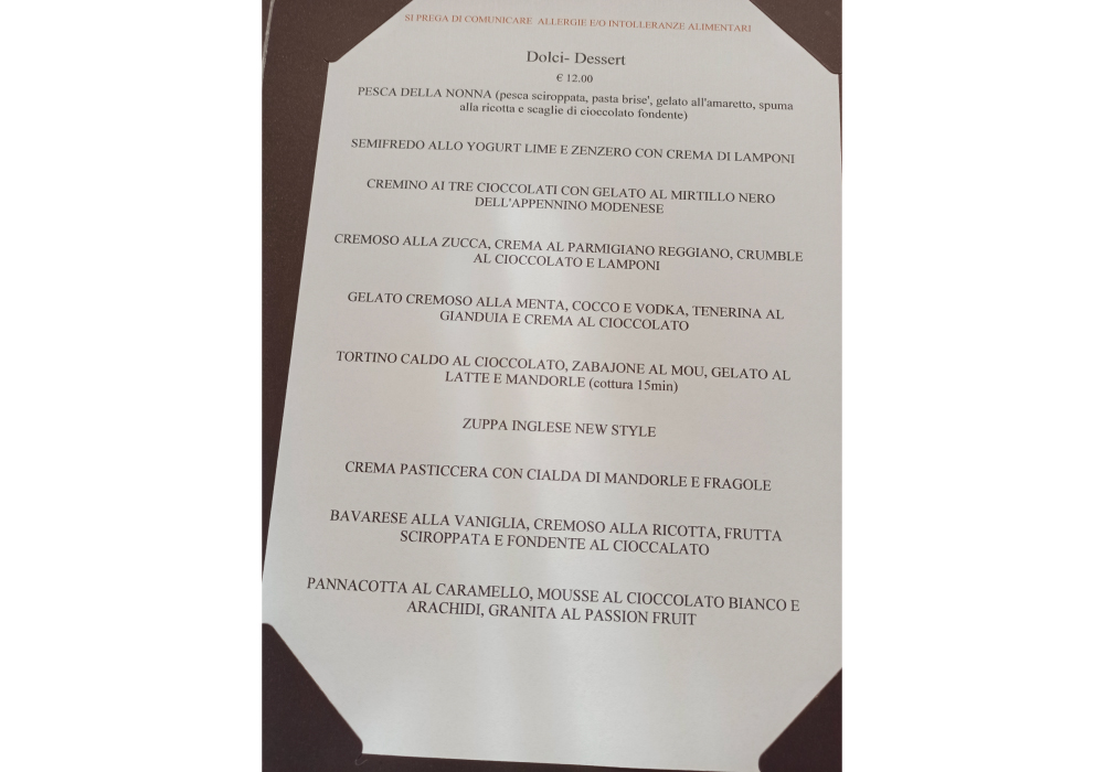 La carta dei dessert di Antica Moka