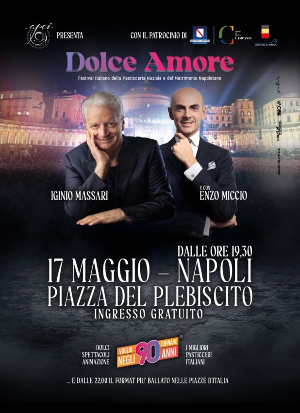 Come testimonianza della volontà di rendere il Festival una festa per Napoli, il finale di Dolce Amore sarà il live show “Voglio Tornare Negli Anni 90”, uno spettacolo che promette di far ballare le migliaia di persone presenti con i migliori DJ degli ultimi dieci anni del ventesimo secolo. Il Festival avrà inizio alle 19.30 a ingresso libero con dolci omaggi dei Maestri Pasticceri per i partecipanti.