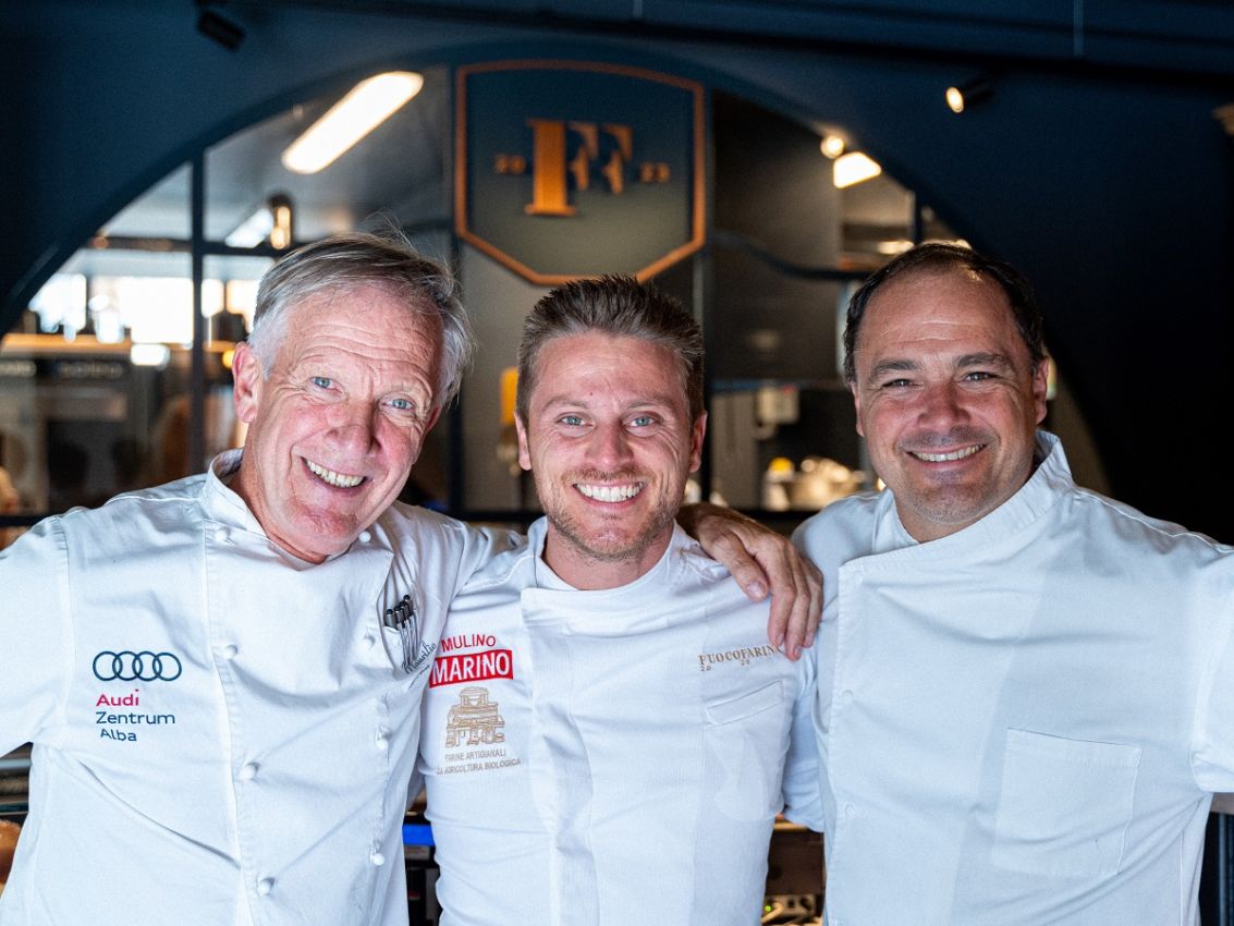 Si chiama FuocoFarina – Lievitazioni in cucina ed è la prima bakery con cucina firmata Fulvio Marino. O meglio, un locale quattro in uno che prevede panetteria, pizzeria, bar e ristorante. Al suo fianco, nella compagine societaria, Giulia Seletto, Maurilio Garola, Nadia Benech e Marco Lombardo del ristorante stellato La Ciau del Tornavento di Treiso, uno dei ristoranti più rinomati in Piemonte.