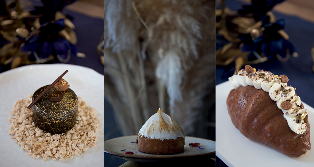 Dolci Eurovo versatili: torta cioccolato, meringa e babà con panna. Pasticceria artigianale, dessert creativi.