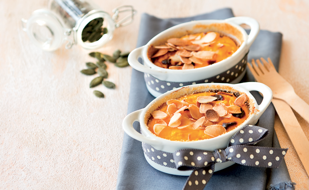 Denocciolate le ciliegie e sciacquatele sotto l’acqua corrente. Cuocetele per circa 10 minuti in qualche cucchiaio d’acqua e zucchero per ammorbidirle. Scolatele. Versate la crema inglese in cocottine individuali, aggiungete le ciliegie e spolverizzatele con le mandorle tritate e lo zucchero di canna. Passate la crema sotto il grill del forno per circa 10 minuti fino a che sarà dorata ai bordi. Fate raffreddare prima di servirla.