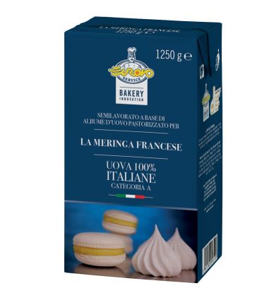In planetaria con la frusta montate stabile La Meringa Francese Bakery Innovation a temperatura ambiente (25°C). A fi ne montata, prima di fermare la macchina, unite lo zucchero a pioggia. Con l’utilizzo di un cucchiaio a spatola mescolate manualmente con un movimento dal basso verso l’alto fino a ottenere una massa omogenea. Aiutandovi con un sac à poche munito di bocchetta “St. Honorè” formate le basi del