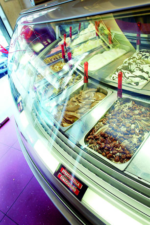 Un pozzetto trasparente, che coniughi la praticità e tecnologia del pozzetto alla possibilità di mettere in evidenza il proprio prodotto. Questo è quello che è emerso dalla nostra inchiesta. Ma forse c’è chi ci ha già pensato… Si tratta di Ifi con la vetrina Tonda. «Non avendo angoli come le vetrine tradizionali – ci conferma Fancesco Palmieri – la temperatura è abbastanza equilibrata in tutta la vetrina. L’unico difetto, forse, è che è poco pratica perché, girando, ostacola il servizio da parte di più di un operatore». «Per una pasticceria è la vetrina ideale – afferma Marco Ercoles, titolare della pasticceria Canasta di Rimini e membro dell’Ampi – la conservazione del gelato è perfetta e rispetto a una vetrina tradizionale occupa meno spazio. Non avendo la stessa utenza di una gelateria tout court, il servizio può essere fatto da una sola commessa. Questa vetrina è bella esteticamente e ha forte attrattiva sui clienti. In più, oltre a occupare meno spazio, permette di conservare il gelato come se fosse in un pozzetto». Con un po’ di organizzazione i problemi legati al servizio si possono risolvere come hanno fatto i titolari della Gelateria Vanilla di Ghedi (BS) (foto sopra), Sabrina Regonaschi con le sorelle Claudia, Loredana e il cognato Diego Rozzini: «Riusciamo a servire bene anche nei momenti di maggior affluenza – spiega Sabrina – perché se un operatore sta servendo il cioccolato, l’altro può tranquillamente servire la crema che si trova nella vaschetta accanto». Il posizionamento dei gusti facilita l’operatore e l’organizzazione del lavoro anche nei momenti di punta: «In particolare – continua Sabrina – abbiamo due vetrine, nella prima ci sono tutti i gusti classici con 12 vaschette più grandi, nella seconda 18 vaschette con i gelati di frutta e le creme particolari, per un totale di 30 gusti. Sapevamo che il pozzetto era la scelta migliore per la conservazione – conferma Sabrina – ma la gente vuole vedere il prodotto e questa ci è sembrata la soluzione migliore!»