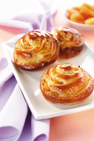 Mettete nell’impastatrice la farina d’orzo, la farina di farro integrale e la farina 00 di frumento (utilizzate una farina con 380 W). Unite successivamente l’acqua, lo zucchero, le uova intere e i tuorli, azionate la macchina solo per unire gli ingredienti, lasciando quindi l’impasto grezzo. Spegnete la macchina e lasciate riposare l’impasto ottenuto (direttamente dentro l’impastatrice) per 45 minuti circa, quindi azionate nuovamente la macchina, aggiungendo il lievito di birra sbriciolato, l’olio extravergine d’oliva, gli aromi e il sale. Lasciate impastare finché otterrete un composto liscio e omogeneo. A questo punto, lasciate “puntare” l’impasto sul tavolo per 20 minuti circa; dopo di che copritelo con carta pellicola e mettetelo in frigorifero per circa 12 ore. Stendete l’impasto con la sfogliatrice in modo da ricavare un rettangolo dello spessore di 1 cm. Spennellate la superficie con uova sbattute, quindi cospargete di albicocche secche tagliate a dadini. Arrotolate la pasta su se stessa, quindi fate raffreddare per circa 15 minuti in abbattitore. A questo punto, tagliate il salame a rondelle e riponetele a lievitare in stufa a 30°C per circa un’ora. Infornate a 200°C per 10 minuti circa quindi, a fine cottura, lucidate con miele caldo.