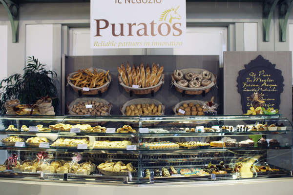 Tantissime le novità per panificazione, sia nelle forme presentate, come i nuovi pan&bauletti ai grani, sia nei prodotti, realizzati con il lievito naturale liquido Hydra Unic e quello in polvere O-tentic utilizzati in applicazioni innovative. La pasticceria da forno ha visto protagonisti i cup-cake e le torte di primavera decorate utilizando Cryst-o-fil, la pratica base al cioccolato precristallizzata. La pasticceria moderna, invece, era rappresentata dal prodotto trendy del momento, il macaron, e da mini bigné ai gusti innovativi ispirati alla primavera. Nell’aula didattica gli ospiti hanno potuto approfondire aspetti tecnici sulla panificazione e l’uso del surrogato Carat (al quale è stato dedicato un corner ad hoc con tante nuove idee per utilizzarlo), mentre nel negozio Puratos è stata ricreata un’esposizione completa di prodotti da forno, pasticceria, cioccolato e surrogato, con preziosi suggerimenti sull’esposizione e il bilanciamento dei prodotti in vetrina. La collaborazione con importanti operatori del settore, ai quali è stato riservato uno spazio espositivo, ha reso più ricca e completa la giornata, caratterizzando il PuraDay come un evento in cui è possibile fare business a 360°. Non è mancato neppure il divertimento, grazie al divertente spettacolo degli artisti di Zelig.