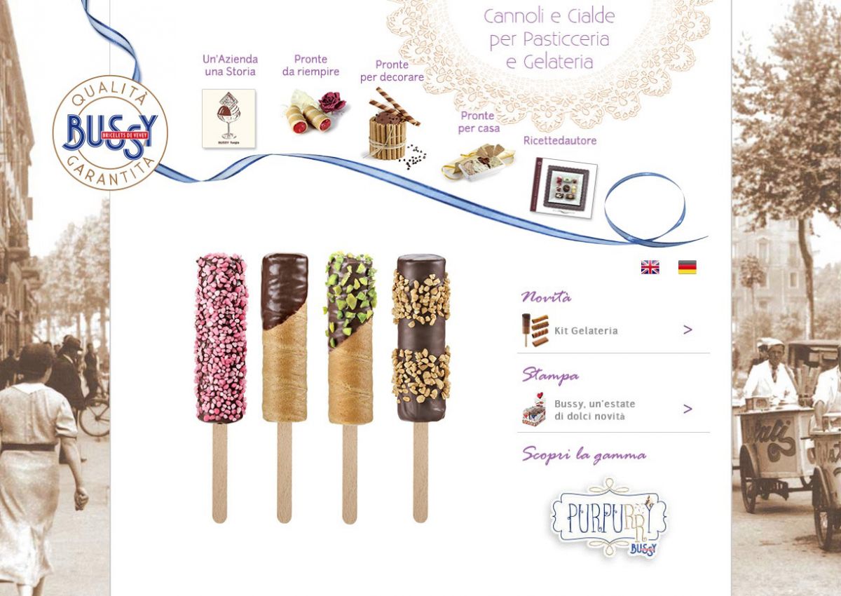 Bussy, l’azienda milanese specializzata nella produzione di cialde, cannoli e decorazioni per gelato e pasticceria artigianali, ha recentemente rinnovato il proprio sito web, dove da oggi si possono trovare – a portata di click – gli oltre 100 prodotti in assortimento oltre alle novità che costantemente l’azienda introduce nel suo catalogo. Al sito web farà seguito un catalogo cartaceo sviluppato secondo lo stesso concept del sito. Idea di fondo è coniugare tradizione e innovazione e così, con uno stile pulito e moderno, il sito ripercorre le tappe della storia dell’azienda e ne conserva elementi simbolo, dal nastrino azzurro che caratterizza tutte le sue pagine alle immagini d’antan delle prime cialde prodotte. A questo si accostano le innovazioni, di prodotto e di tecnologia, che dal 1967, anno della fondazione, hanno accompagnato le creazioni dell’azienda. Tante le sezioni da consultare, tra cui, particolarmente “golosa” quella delle Ricette D’Autore un vero e proprio e-book, sfogliabile on-line, con tante idee da provare e sperimentare. Originale anche la suddivisione della gamma prodotti in categorie che superano la classica distinzione in “pasticceria” e “gelateria”: le referenze, infatti, sia sul web che nel catalogo cartaceo, sono state suddivise in “Pronte da riempire”, “Pronte per decorare” e “Pronte per la casa”.