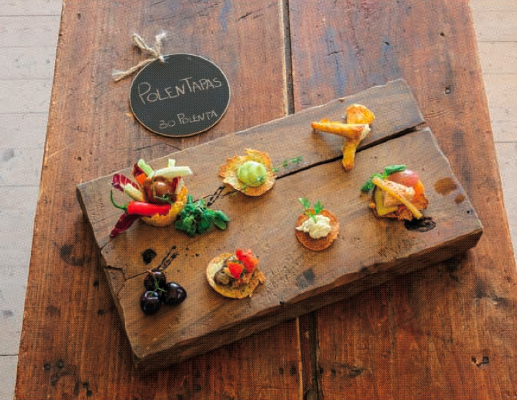 Nella foto le “polentapas” stuzzichini a base di polenta proposti nel locale 30 Polenta di Bergamo