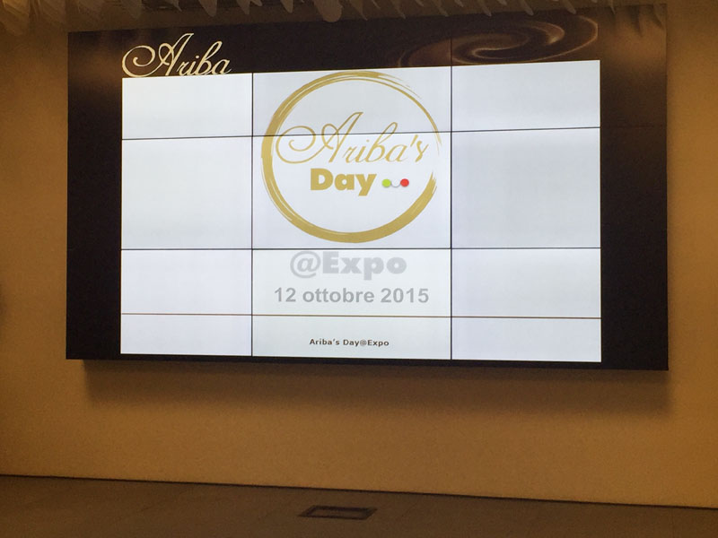 12 ottobre 2015, la data dell’Ariba’s Day. Un evento organizzato da Unigrà Srl, presso Expo 2015, all’interno del padiglione CibusèItalia, per far incontrare il proprio marchio di cioccolato d’eccellenza, Ariba, con i più grandi maestri cioccolatieri e pasticceri italiani. L’evento è iniziato con un tour guidato dei padiglioni più rappresentativi dell’esposizione universale e si è chiuso con una raffinata cena di gala a base di cioccolato, all’altezza dello chef bistellato Emanuele Scarello. Il dessert al piatto, invece, è stato studiato dal maestro pasticciere Paolo Sacchetti, in collaborazione con il maestro Riccardo Patalani.