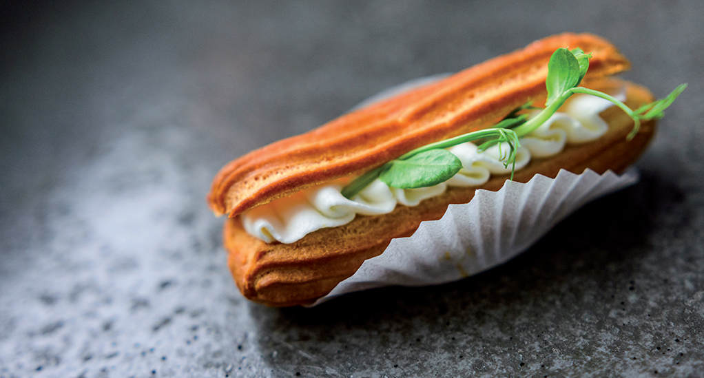 • Marco Gualandi de La Pasticceria di Argenta (FE) ha adottato, nella composizione e negli abbinamenti, gli stessi criteri della pasticceria dolce. La sfida? Ritardare l’ossidazione del prodotto, che nel salato è più rapida. Per ovviare a questa problematica la pasticceria salata viene assemblata all’ultimo momento, ma questo fa sì che abbia minore peso in vetrina.