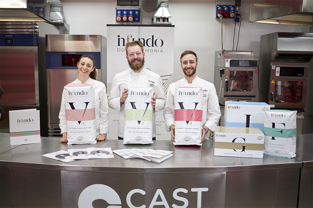 L’intervento seguente è di Leandro Cariolo, che presenta la nuova gamma di prodotti Italia Zuccheri, ideata per i professionisti. Si chiama INFUNDO e nasce dai migliori cristalli di zucchero per ottenere le migliori performance. Gli zuccheri infatti non sono indifferenziati, ma esiste uno zucchero specifico per ogni creazione.