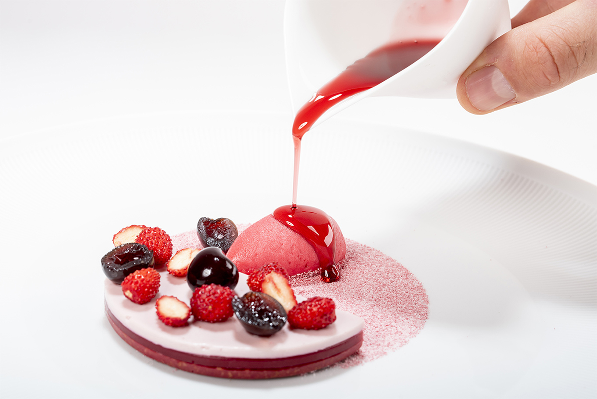 Composizione di frutti rossi e Amarena Fabbri di Fabrizio Fiorani e Italian Vice di Bruno Vanzan formano così un’interessante proposta estiva in perfetto abbinamento. “La stratificazione del mio dolce crea un’assonanza con l’esperienza gustativa del cocktail – racconta il Maestro Fiorani – Nel sorseggiare un drink, infatti, con un solo sorso si gusta tutto l’insieme delle parti che lo compongono. Similmente in questo dolce ho creato una struttura tale da poterne prendere tutti gli strati con un solo cucchiaio, così da avere una totalità gustativa. Nel cocktail di Bruno, poi, si trova la polpa di fragole che fa da trait d’union con il dolce, creando un percorso esperienziale di grande armonia”. La scelta degli ingredienti? Ovviamente Fabbri 1905: “Mi sono focalizzato su Amarena Fabbri ancora una volta – spiega Fabrizio Fiorani – perché penso sia un ingrediente eccezionale in pasticceria. Qui fragoline e frutti rossi la esaltano, pur restando Amarena l’assoluta protagonista. Trovo sempre sorprendente riscoprire come, nell’immaginario collettivo, Amarena sia “Amarena Fabbri”: un sapore che i clienti desiderano ritrovare intatto. Per questo diventa ogni giorno un ingrediente mai banale che gli italiani (e non solo) ricercano e apprezzano sempre in pasticceria. Per il biscotto? Ho utilizzato la pasta Nocciola Bollo Oro Fabbri 1905: la trovo eccezionale, molto intensa”.