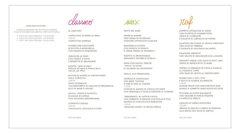 La carta dei dessert de Le Calandre