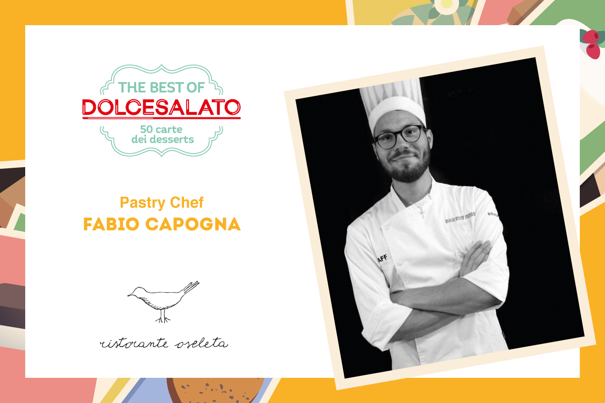 Classe 1988, Fabio Capogna scopre la sua passione per la pasticceria fin da piccolo. Dopo gli studi all’Istituto Alberghiero di Molfetta, si perfeziona tra Germania e Inghilterra, per poi approdare a CAST Alimenti, dove conosce il maestro Lucca Cantarin, con cui lavora alla pasticceria Marisa: «Lì ho passato tre splendidi anni – confessa Capogna – e il mio bagaglio si è arricchito molto. Dopo quest’esperienza mi sono cimentato nel mondo della pasticceria da ristorazione e ho lavorato in diversi alberghi di lusso, fino ad approdare a Villa Cordevigo Wine Relais, cinque stelle lusso a Cavaion Veronese, dove ricopro il ruolo di pastry chef affiancato dalla pasticcera Terry Fortunato». La filosofia del ristorante Oseleta è basata su un concept di semplicità e di stagionalità, rispetto delle materie prime e valorizzazione di ogni singolo elemento. «Il filo conduttore tra menu di cucina e carta dei dessert – spiega il pastry chef – è la volontà mia e dello chef Marco Marras di fondere i prodotti del territorio circostante a Villa Cordevigo a quelli più caratteristici delle nostre terre natie. La carta dei dessert è composta da cinque proposte che variano dalla golosità del cioccolato Guanaja 70% e caramello mou alla freschezza di karkadé e guaiava. In ogni mio piatto cerco di inserire elementi con diverse consistenze e temperature in modo da creare un’armonia e da trasmettere un’esperienza polisensoriale. La carta cambia in base alla stagione e tre sono le proposte: primavera, estate e autunno/inverno. Da quest’anno abbiamo inoltre introdotto il servizio al carrello della piccola pasticceria».