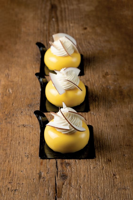 Un prodotto che è uscito dalla qualifica (limitante) di moda del momento, per diventare un mood per i nuovi trend della pasticceria, attraverso cui ci guida Giuliano Casotti che ha creato una serie di proposte inedite e innovative. Immortalate dall’obiettivo di Andrea D’Antoni, denotano i valori fondanti della sua pasticceria: tradizione, tecnica, ricercatezza, cura delle linee e delle forme, una nuova visione della pasticceria e una ricerca costante su sapori, profumi e consistenze. «Oggi il mondo delle monoporzioni è sostanzialmente diviso in due: il salutismo da una parte e il piacere dall’altro. I prodotti artigianali e tradizionali la fanno sempre da padrone. Da qualche anno, però, è nato un forte interesse per le monoporzioni solitamente in stile moderno, come le Cream Tarte e Drip Cake, la cui richiesta è in costante crescita. Proposte dolci, curate nei minimi dettagli che, partite in sordina come prodotti di nicchia, si stanno accaparrando una fetta sempre più consistente di mercato. Le monoporzioni conquistano per la possibilità di gustare due o più dessert in una volta, ma soprattutto per la loro componente estetica perfetta rispetto alla fetta di torta. La monoporzione è essenza di forma e design, ricercatezza nella presentazione e attenzione alle armonie di colori e geometrie. Quello che, poi, non può mai mancare è sicuramente un simmetrico riscontro tra immagine e palato».