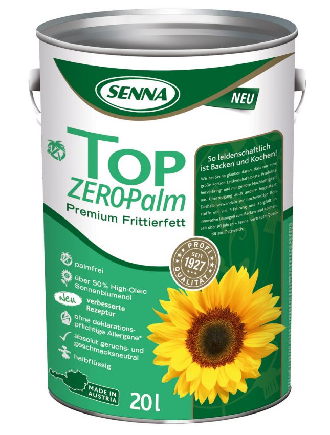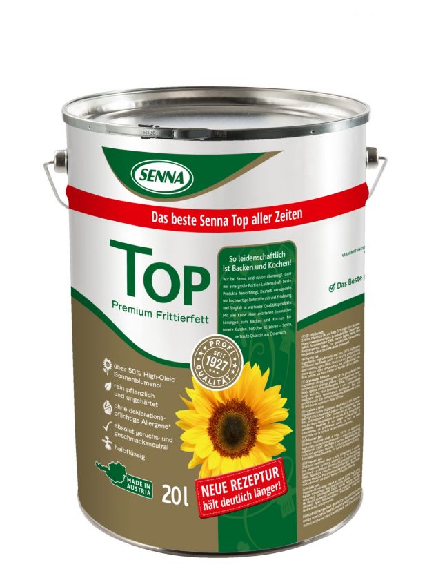 Senna Top e Senna Top Zero Palm (la versione senza olio di palma), sono miscele altamente tecnologiche ottenute dagli oli di girasole alto oleico più pregiati che, da oltre 30 anni, vengono perfezionate e innovate per raggiungere prestazioni e funzionalità uniche.