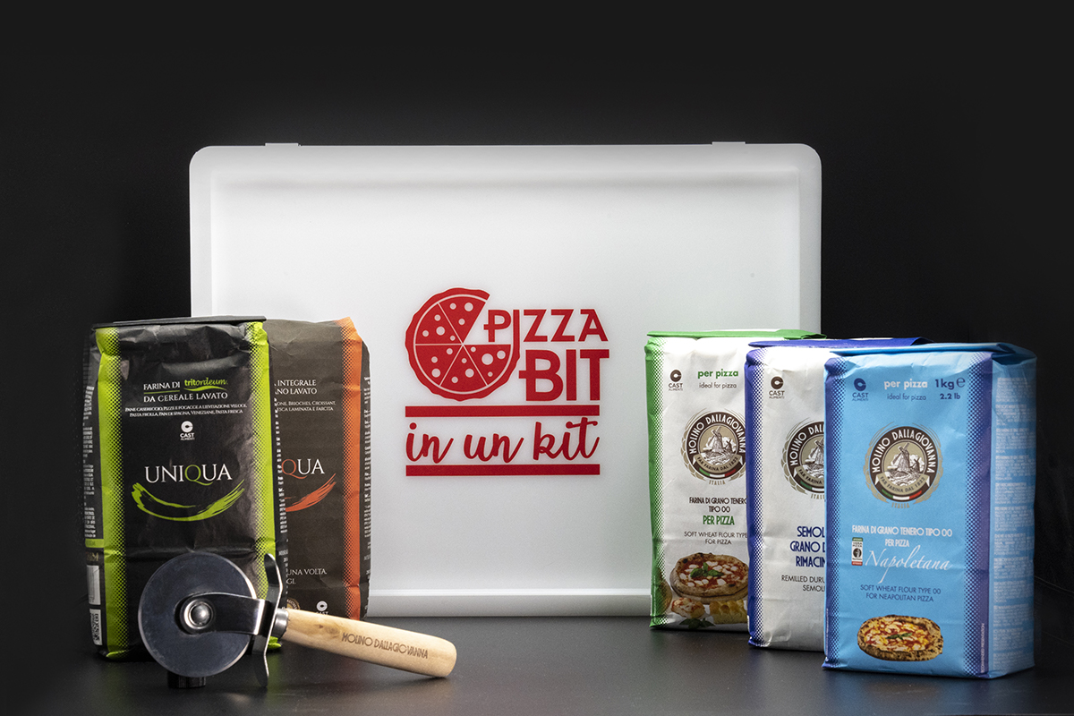 Durante l’evento è stata presentata in anteprima la nuovissima box di Molino Dallagiovanna “Pizza Bit in un kit”. Permette di realizzare anche a casa la pizza con le farine utilizzate dai migliori professionisti dell’Arte Bianca. É con queste farine che le due squadre hanno realizzato le pizze per la sfida. Il kit, da oggi in vendita sull’e-shop di Molino Dallagiovanna, contiene: