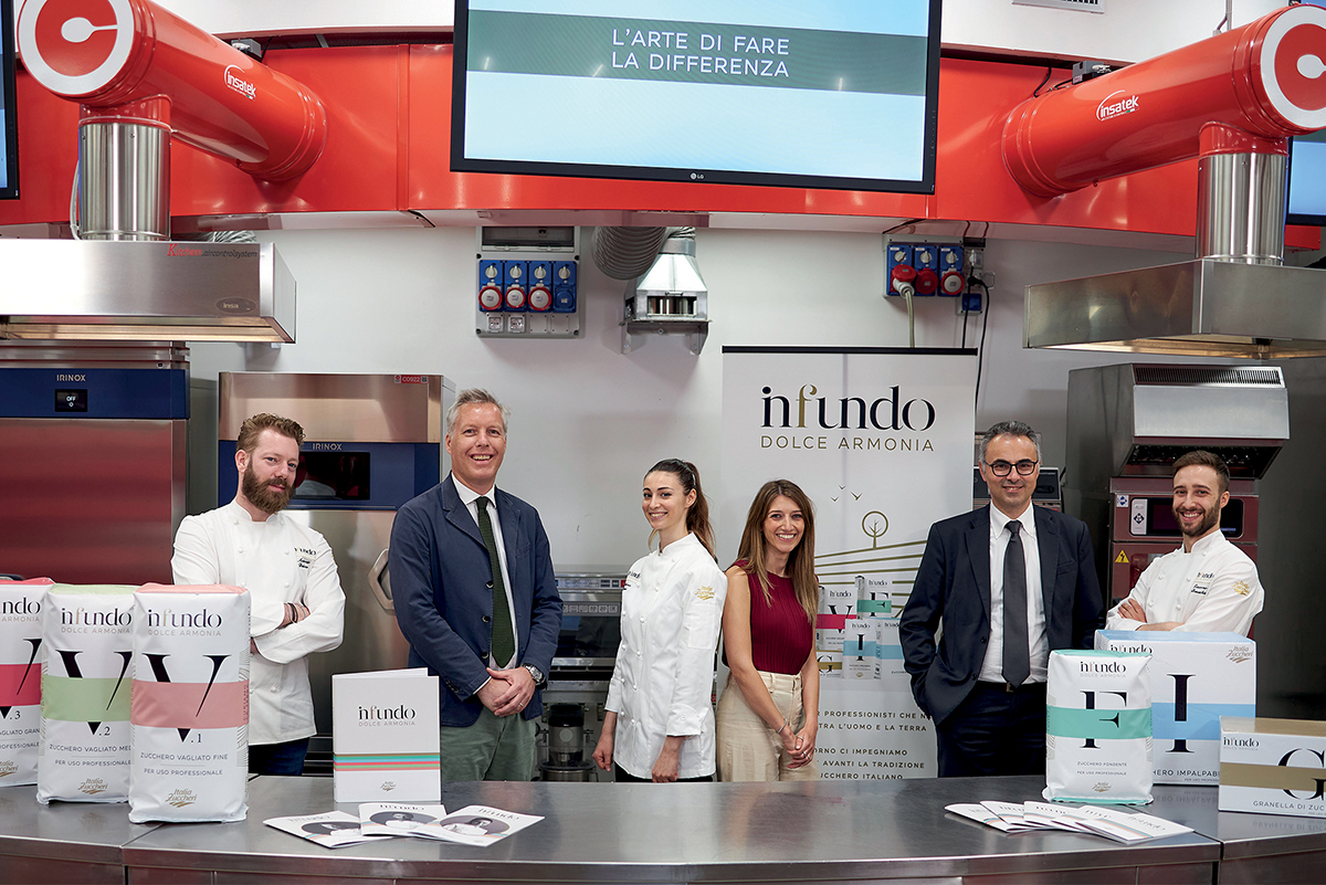 A guidarci alla scoperta delle peculiarità tecniche e aromatiche della linea Infundo ci sono i Maestri pasticceri Antonio Daloiso, Federica Russo e Giacomo Besuschio, Brand ambassador di Italia Zuccheri. «Un esempio su tutti – sottolinea Federica Russo – è il Vagliato Fine che, sciogliendosi più facilmente e velocemente di altri zuccheri, riduce i tempi di impasto e il “rischio” che si scaldi troppo. Uno zucchero, quindi, ideale per prodotti a lunga lievitazione come il panettone, la cui temperatura di impasto non deve superare i 27°C ». Pratico e versatile, Vagliato Fine Infundo è ideale per molte altre preparazioni. «Ottimo per la frolla – prosegue Federica Russo –: essendo più solubile, la rende più friabile, originando un impasto più omogeneo. Non da ultimo, il Vagliato Fine è perfetto nelle creme, poiché evita la formazione di grumi nella miscelazione e, in fase di cottura, accorcia i tempi di lavorazione».