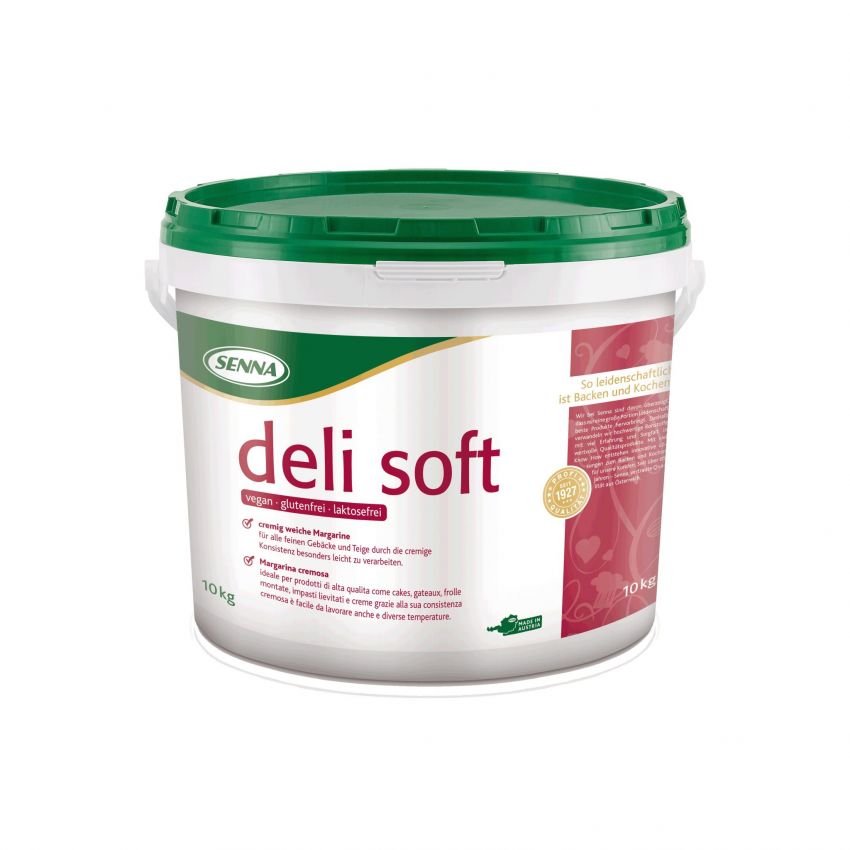 La margarina Senna Deli Soft fa parte della linea Delikatess, la linea di margarine Senna contraddistinta per essere arricchita con una percentuale di latte che rende il prodotto finito con un colore più uniforme, ambrato ed un sapore squisitamente fresco.