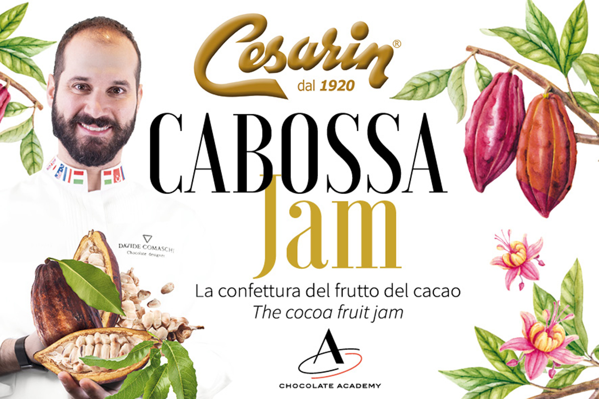 Tra le novità più interessanti scoperte a Sigep 2022 non può mancare la Cabossa Jam di Cesarin. Studiata da Davide Comaschi in collaborazione con Chocolate Academy, è un’innovativa confettura ricavata dalla cabossa: il frutto del cacao. All’interno è presente una ridotta percentuale di cioccolato fondente per conferire il colore tipico del cacao. La lavorazione della cabossa avrebbe infatti portato ad una colorazione sui toni del bianco, sicuramente meno appetibile per i prodotti di pasticceria. La Cabossa Jam è inoltre termo stabile, quindi adatta anche alle preparazioni da forno.