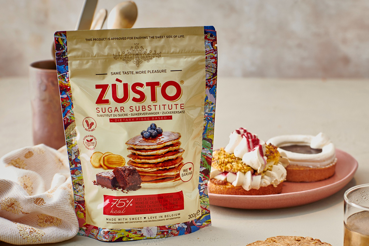 Zùsto è il sostituto dello zucchero nato a Mechelen, in Belgio. Contiene una combinazione di fibre alimentari vegetali come il polidestrosio e le fibre di cicoria e mais. Queste sono state scelte appositamente per le ottime qualità come alternativa allo zucchero in tutti i tipi di ricette dolci. Zùsto contiene il 75% di calorie in meno rispetto allo zucchero tradizionale. Ma è una soluzione intelligente soprattutto perché presenta lo stesso gusto, la stessa consistenza dello zucchero e anche lo stesso rapporto di peso. Motivo per cui non è necessario modificare le proprie ricette. In più presenta un basso indice glicemico ed è indicato anche per chi soffre di diabete.