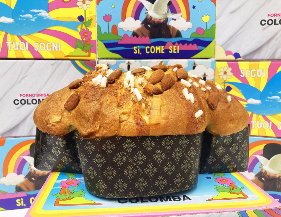 La colomba del Forno Brisa è ancora più radicale nella scelta degli ingredienti, delle materie prime solo biologiche. E, per la prima volta, anche dei canditi provenienti da filiere con un impatto marcatamente positivo sulla terra e sulle persone. Quest’anno è dedicata alla dimensione del sogno. La scatola, ispirata a Magritte, vuole spingere l’immaginazione oltre la realtà. La scelta è dunque quella di trasmettere positività attraverso le grafiche coloratissime e i messaggi di ottimismo. Confidando che mangiare una colomba buona possa donare un po’ di felicità a chi la riceve. Disponibili le versioni classica, gianduia, albicocca e cioccolato. Ma il Forno di Bologna produrrà anche due varianti vegane e le colombe “brutte ma buone”. Ovvero quelle perfette a livello organolettico ma con qualche difetto estetico, che troveranno posto sui banchi dello spaccio scontate.