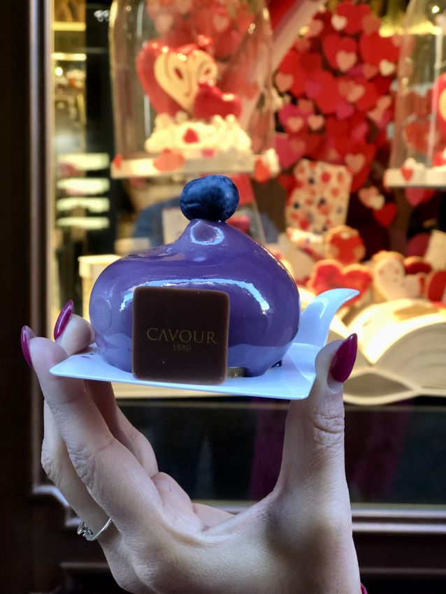 Ovunque regna un’atmosfera calda, morbida e avvolgente. Questa contribuisce a farti sentire “felice e a tuo agio” con la complicità di una musica suadente e delicata. Proprio come ogni gesto del personale che ti accoglie in divisa, sfoggiando un savoir faire fatto di sorrisi e disponibilità. La carta offre ampia scelta fra dolci e salati. I primi spaziano da mono porzioni e torte classiche a buffet. Tra queste la Donizetti e la Cavour, accompagnate con salsa o gelato, a brioche, biscotteria e cioccolatini. Ancora più ricca, perfetta per il pranzo o l’aperitivo, la selezione dei salati. Toast, piadine vegetariane o con salmone, insalate, due tipi di pizze gourmet. Ecco la Caesar e la Cavour (pizza al vapore con burrata, acciughe del Cantabrico e pomodorini confit).