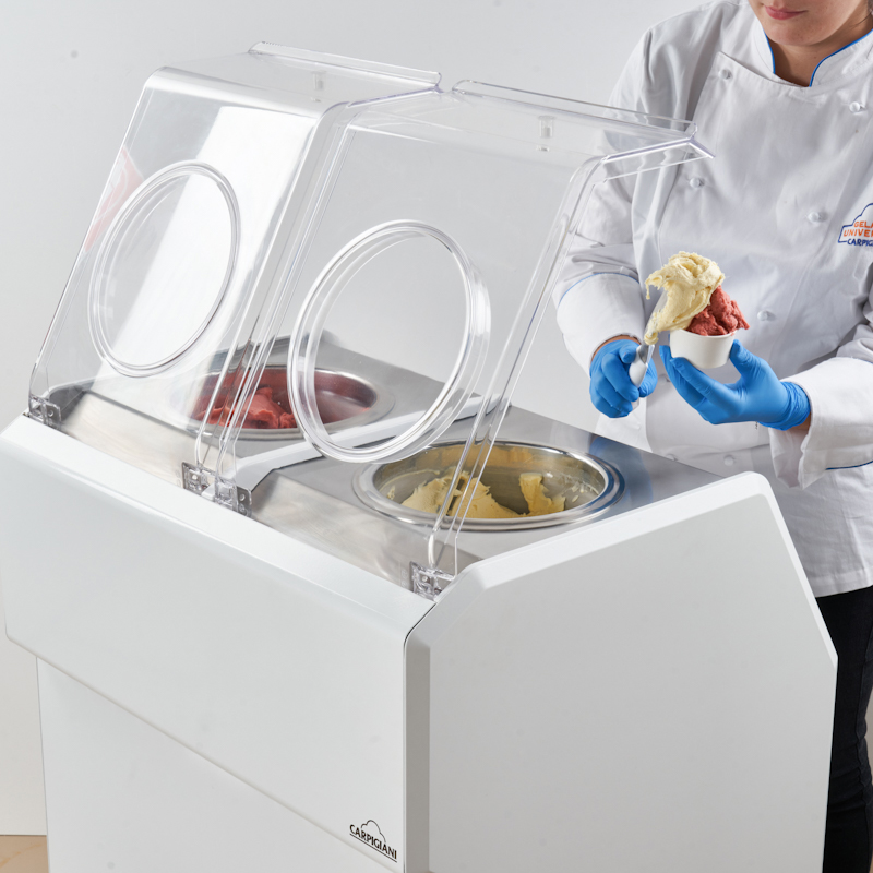 Tra le innovazioni introdotte da Bravo troviamo la riempitrice professionale Fill Good. Una macchina che nasce per l’industria, ma che oggi – con le nuove dinamiche generate dal mondo post pandemico – è utilizzata anche dai gelatieri e pasticceri. Un po’ come se fosse una piccola sac-à-poche con cui riempire vaschette di medie e grandi dimensioni. Ma anche coppette e bicchierini con gelato, marmellata, sorbetti, ganache e creme. Carpigiani ha invece lanciato Synthesis 2. Si tratta di un sistema modulare che permette di produrre, conservare e servire il gelato in un’unica soluzione. Cioè direttamente davanti ai clienti e senza interrompere la catena del freddo.