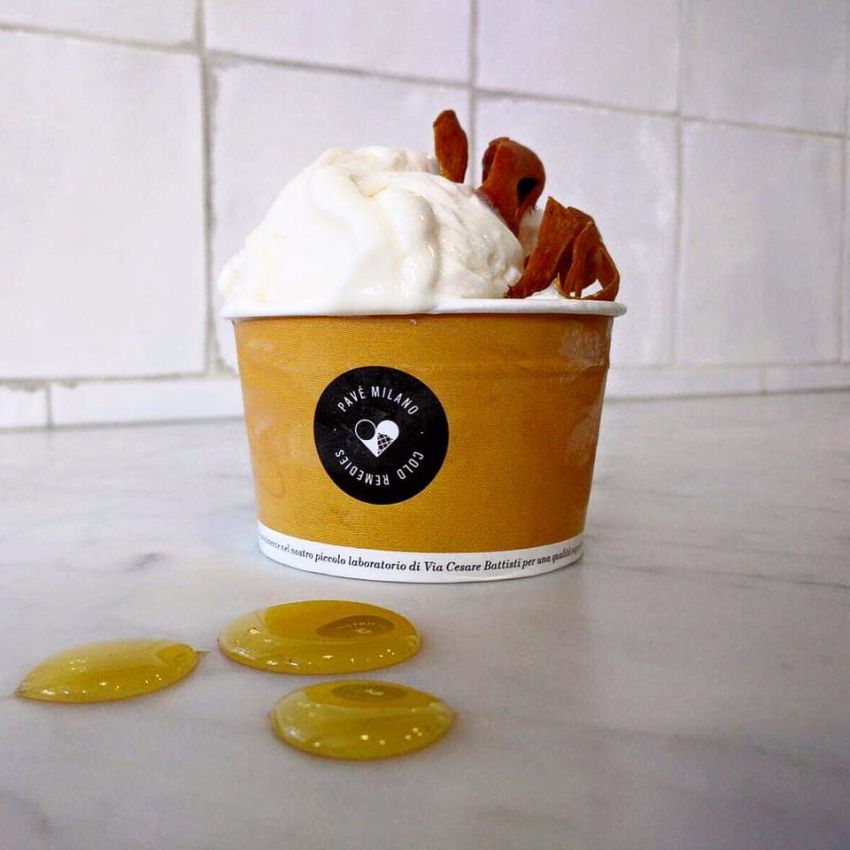 Ha appena festeggiato 10 anni di attività, portando con sé rivoluzioni in campo dolce così come in comunicazione. L’indirizzo milanese Pavé, nella sua insegna dedicata alla gelateria, offre un gelato leggero, coerente con la stagionalità. Ma anche con la proposta di pasticceria che costruita in 10 anni di attività. Tra i gusti più originali, come kiwi giallo, mascarpone e chinotto, tarte-tatin, yogurt e ginestra, non ne poteva mancare uno dedicato alle api. Ed ecco miele e macis, che accosta la dolcezza del primo al sapore della parte esterna della noce moscata, più delicato, caldo, fiorito e dolce della spezia che meglio conosciamo.