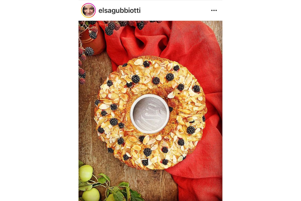 La morbidissima ciambella da credenza di Elsa nasce dai suoi ricordi di bambina, quando con la nonna usciva presto nel mattino settembrino per raccogliere le more e i fiori di sambuco. More di rovo è un dolce antico con cottura lenta, pieno di mele e more, profumato di anice e cannella e reso irresistibile da una gelée alle mele selvatiche spennellata dopo la cottura. La gelée fa aggrappare le more di rovo che danno un tocco amaro e croccante. Questa ciambella è perfetta per accompagnare con una crema inglese.