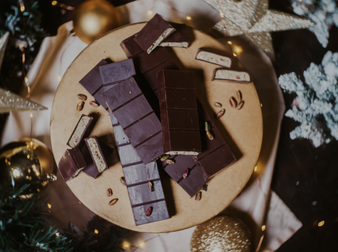 I dolci natalizi della Pasticceria Panzini di Subiaco sono tantissimi e molto golosi. Tra di loro troviamo anche un torrone al cioccolato realizzato in diverse varianti e proposto in una tavoletta da 250 grammi. Si può assaggiare con cioccolato fondente e pistacchio, cioccolato fondente, mandorla e arancio, cioccolato fondente con nocciole intere e cioccolato al latte con nocciole intere.