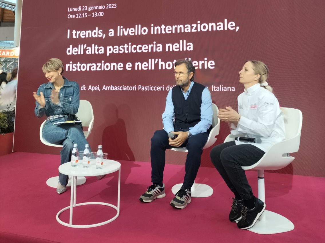 Con Cracco, sul palco di Sigep, era presente Loretta Fanella, che proprio con l’ex giudice di Masterchef Italia aveva iniziato la sua carriera nell’alta ristorazione nel 2001, all’interno di Cracco Peck. Dopo quell’esperienza, Fanella ha trascorso tre anni a El Bullì con Ferran Adrià per poi trasferirsi all’Enoteca Pinchiorri di Firenze e oggi è imprenditrice del settore al Loretta Fanella Pastry Lab di Livorno.