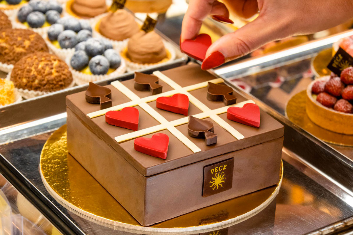 Diverse e bellissime le creazioni dolci di Peck per il giorno di San Valentino, studiate dal pastry chef Galileo Reposo e dal suo team. Si parte con “Love Always Wins”, una scatola da gioco realizzata interamente in cioccolato fondente che ha al suo interno praline a forma di cuore e di picche che ricordano il tema del gioco. Si prosegue poi con i Love Cookies, due biscottini di pasta frolla a forma di cuore ripieni di ganache di cioccolato bianco e lampone. La Tavoletta Red Heart è realizzata con cioccolato equatoriale fondente 55% con all’interno cinque cuori ripieni di lampone e frutto della passione. Oltre a tutte le creazioni che si trovano sempre in negozio, chiudiamo il giro con la Tavoletta “I Love You”, un rettangolo di cioccolato bianco che diventa una tela incorniciata di cioccolato, con all’interno la scritta “I Love You” realizzata a mano, disponibile nella versione in cioccolato bianco ivoire 35% e cioccolato fondente 55%.