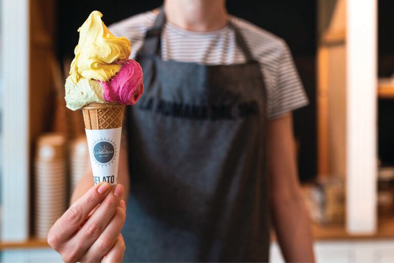 R: È difficile sintetizzare 76 anni di storia, ma ci provo. La Romana nasce nel 1947 da un progetto di due pazzi scriteriati, come mi piace definirli: mio padre e il suo socio, che due anni dopo la fine della Seconda Guerra Mondiale decidono di aprire una gelateria in un locale di 30 mq nel centro di Rimini. Dopo i primi anni di difficoltà l’attività inizia a decollare, tanto da spostarsi in uno spazio più grande di 70 mq, dove ancora oggi ha sede il primo punto vendita La Romana. Nel frattempo, mio padre si separa dal socio e decide di gestire da solo la gelateria, che si caratterizza per l’ampia offerta di gusti, circa 50. Nel 1962 nasce mio fratello Ivano e nel 1970 arrivo io. Entrambi lavoriamo con nostro padre fin da ragazzini. Nel 1998, a 28 anni, sento il desiderio di avviare una mia attività, sempre con lo stesso marchio, ma con un animo più moderno, adeguato al periodo storico. Contro la volontà di mio padre che non mi riteneva pronto per affrontare questa sfida mi tuffo in questa nuova avventura, aprendo un locale fuori dal centro cittadino. C’è possibilità di parcheggiare e quindi punto sull’asporto, a differenza di mio padre che, essendo in isola pedonale, ha come core business i coni da passeggio. Dopo poco inauguro il secondo punto vendita. Nel 2000 arrivo a quota quattro. Nel 2001 la prima apertura all’estero, a Bucarest, nel 2005 tre inaugurazioni a Pechino. Ma commetto un errore fatale. Continuo a ragionare con la mentalità da artigiano e non mi strutturo adeguatamente per la dimensione che avevo. Così nel 2008 chiudo il 70% dei punti vendita e resto solo con i quattro di Rimini.