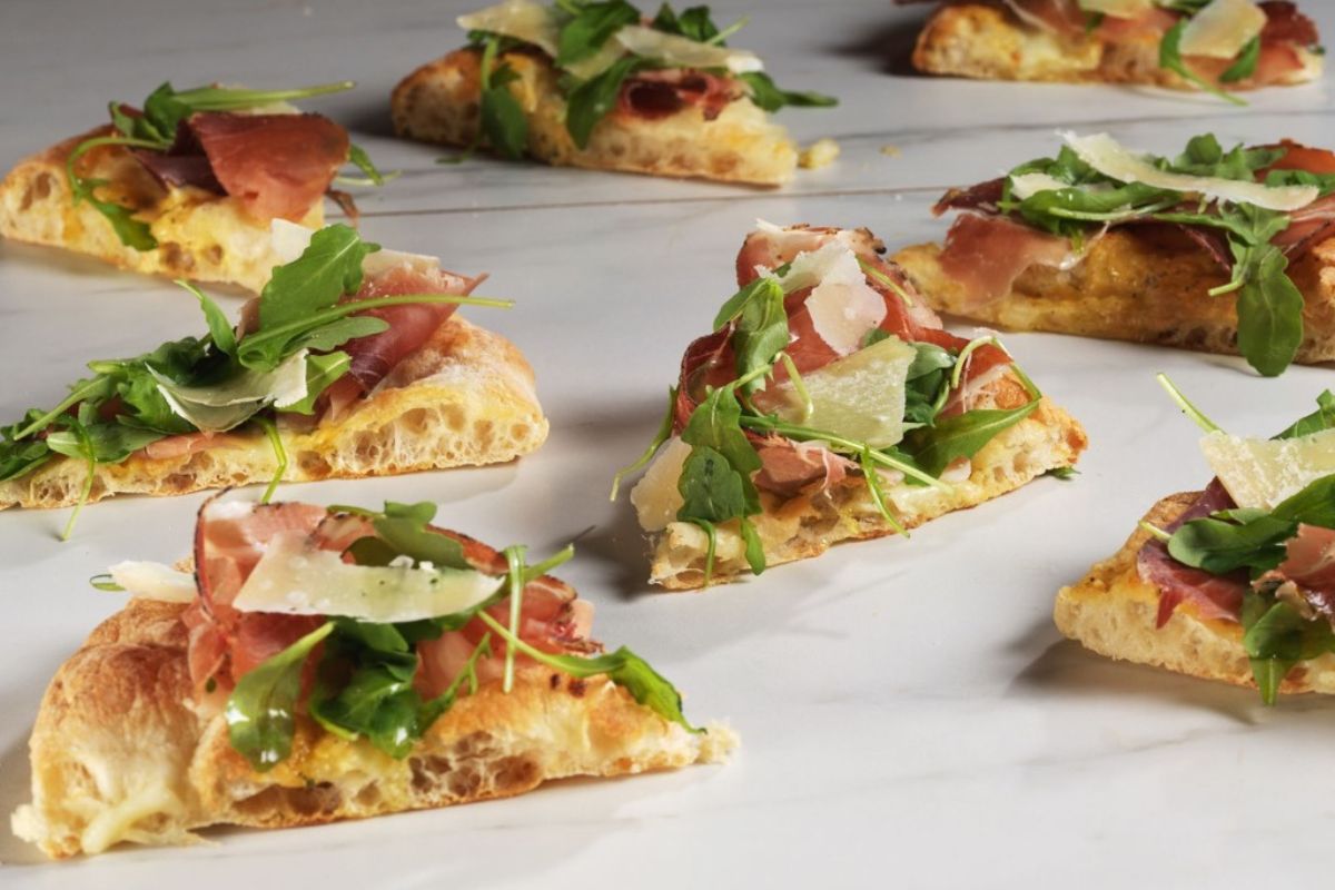 Disponibile in oltre 30 dimensioni e forme, può essere servita nei grandi formati da condivisione (55 x 30, 55 x 25 e 40 x 30), ma è particolarmente adatta a essere porzionata per l’aperitivo o il banqueting, anche nella sua versione tonda, che si può trovare intera o spicchiata, normale o gourmet. Sono invece 5 le varianti di gusto: classica, integrale, riso venere®, rustica, grano duro.