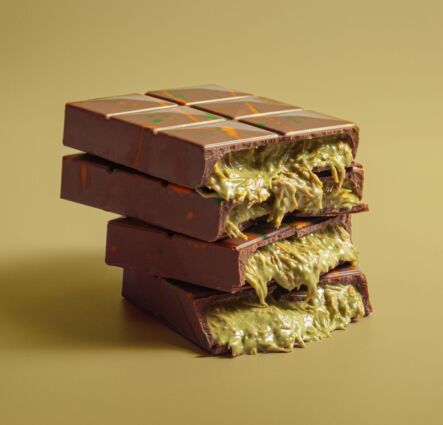 Una crema unica che unisce la ricchezza del pistacchio al crunch sorprendente della kataifi, mantenuto intatto grazie alla tecnologia di lavorazione esclusiva IRCA.