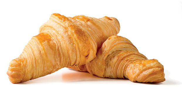 Sciogliete latte e zucchero, quindi impastate con farina, lievito di birra e naturale e fate impastare per 4 minuti. Versate in successione sale e burro. Tempo totale d’impasto 11 minuti. Stendete l’impasto su una teglia 60×40 e mettete a raffreddare una notte a 4°C. L’indomani, laminate il burro a 8 mm, incassatelo nella pasta e date una piega da quattro e una da tre. Fate riposare almeno 20 minuti in frigorifero a 4°C, formate, lasciate lievitare a 27°C e cuocete a 175°/180°C per 18 minuti.